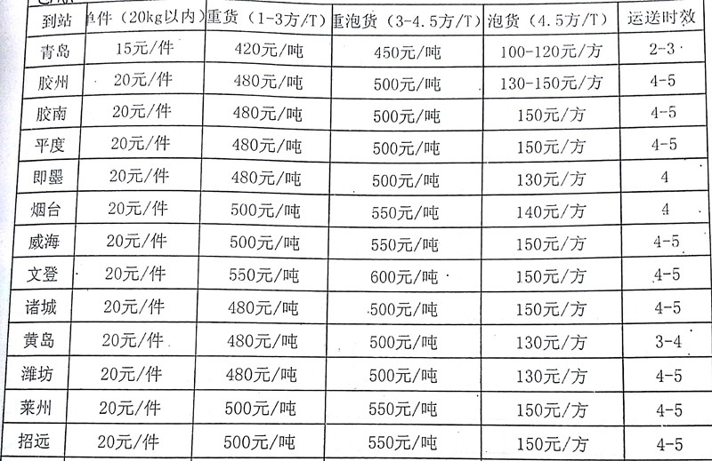 成都到膠州物流專線價格: