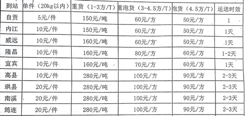 朋友們,我公司是公路汽運,如果您,有行李,有設備,有家具,有電器,有電腦,有儀器,有貨,有貨發,找元邦物流。無論您,有貨,從成都,從內江,找返空車,回程車,配載車,如果你要了解托運價格,貨運價格,如何收費?運價、運費、貨運費,托運費,物流費用,怎么算?多少錢一噸?多少錢一方?多少錢一公斤?可以貨到付款,運費貨到付,運價低,費用低、